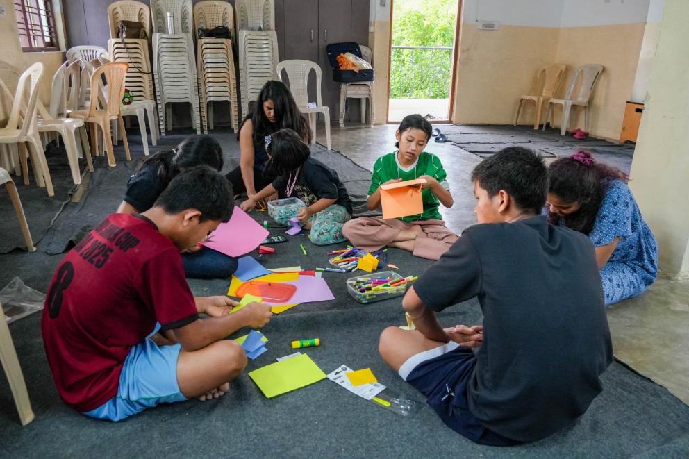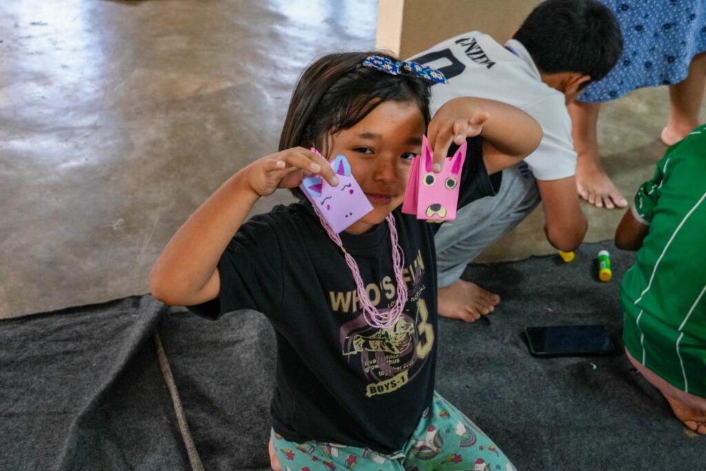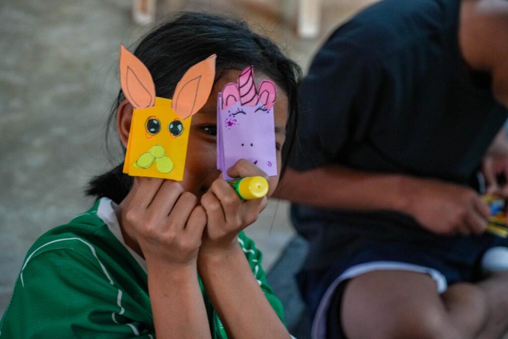 Then came the craft activity: making puppets. We handed out materials, explained the process, and watched as creativity took over the room. Each child threw themselves into it — choosing colours, designing faces, giving their puppets names and personalities before they were even finished.